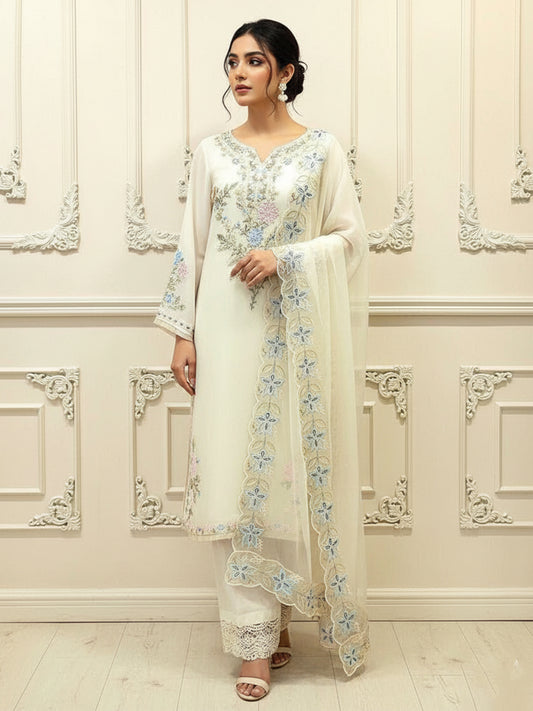 Azure – 3PC luxury unstiched Shafon Embroidered Suit