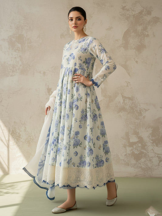 Aneelas Collection | Most Hit Design Silk Digital Printed Suit with Heavy Cut Work Embroidery