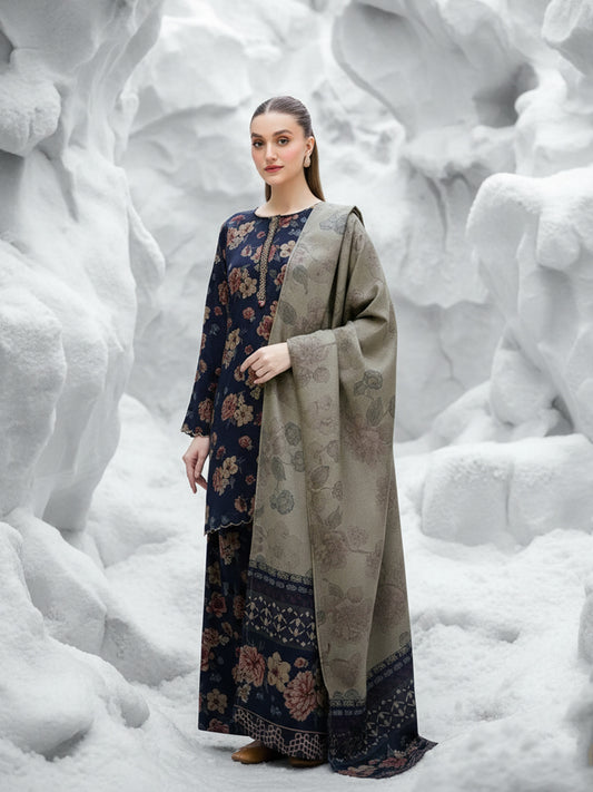 BAROQUE Midnight Mosaic: Dark Dhanak 3PC Digital Suit - Floral & Animal Print Fusion