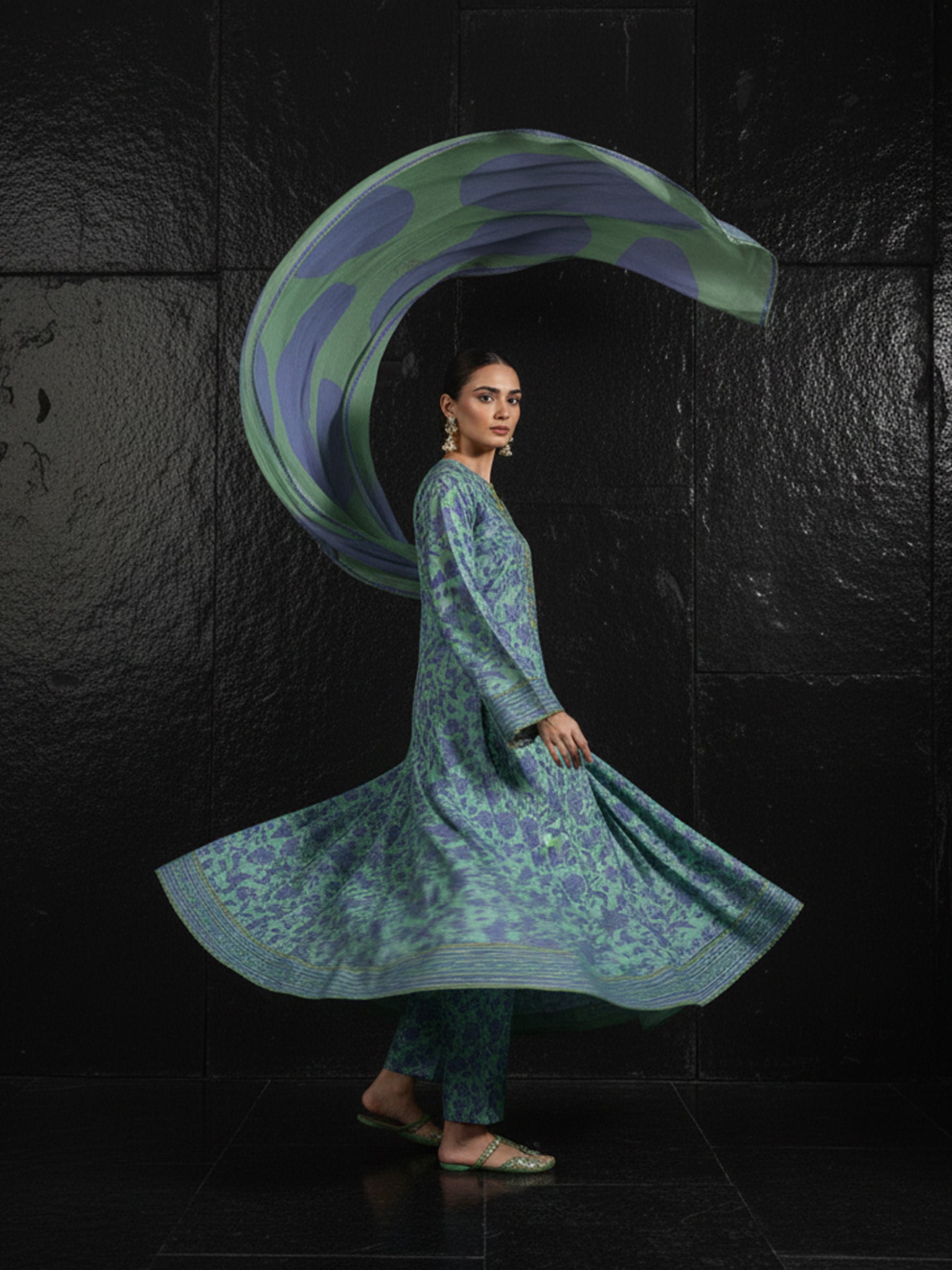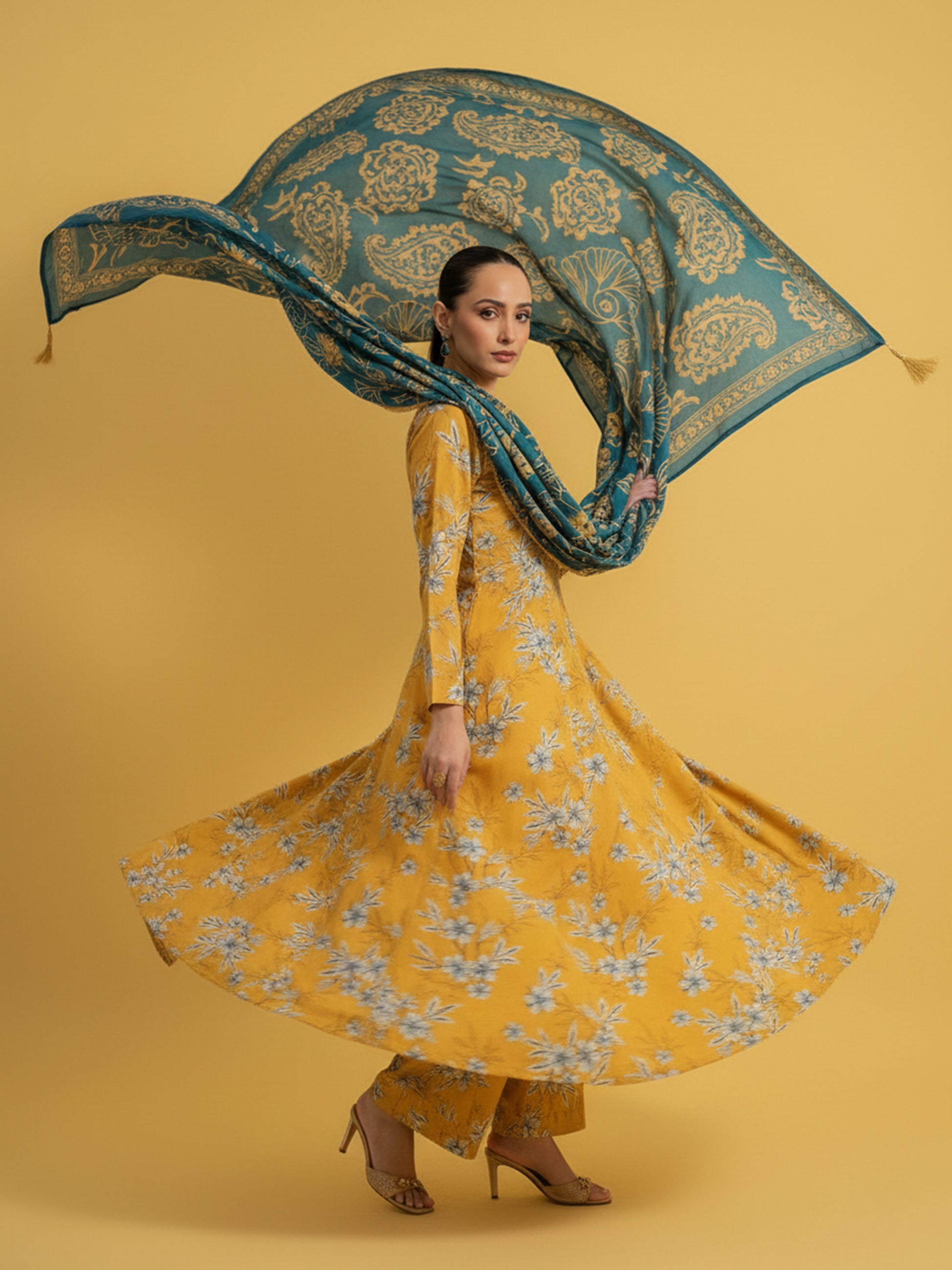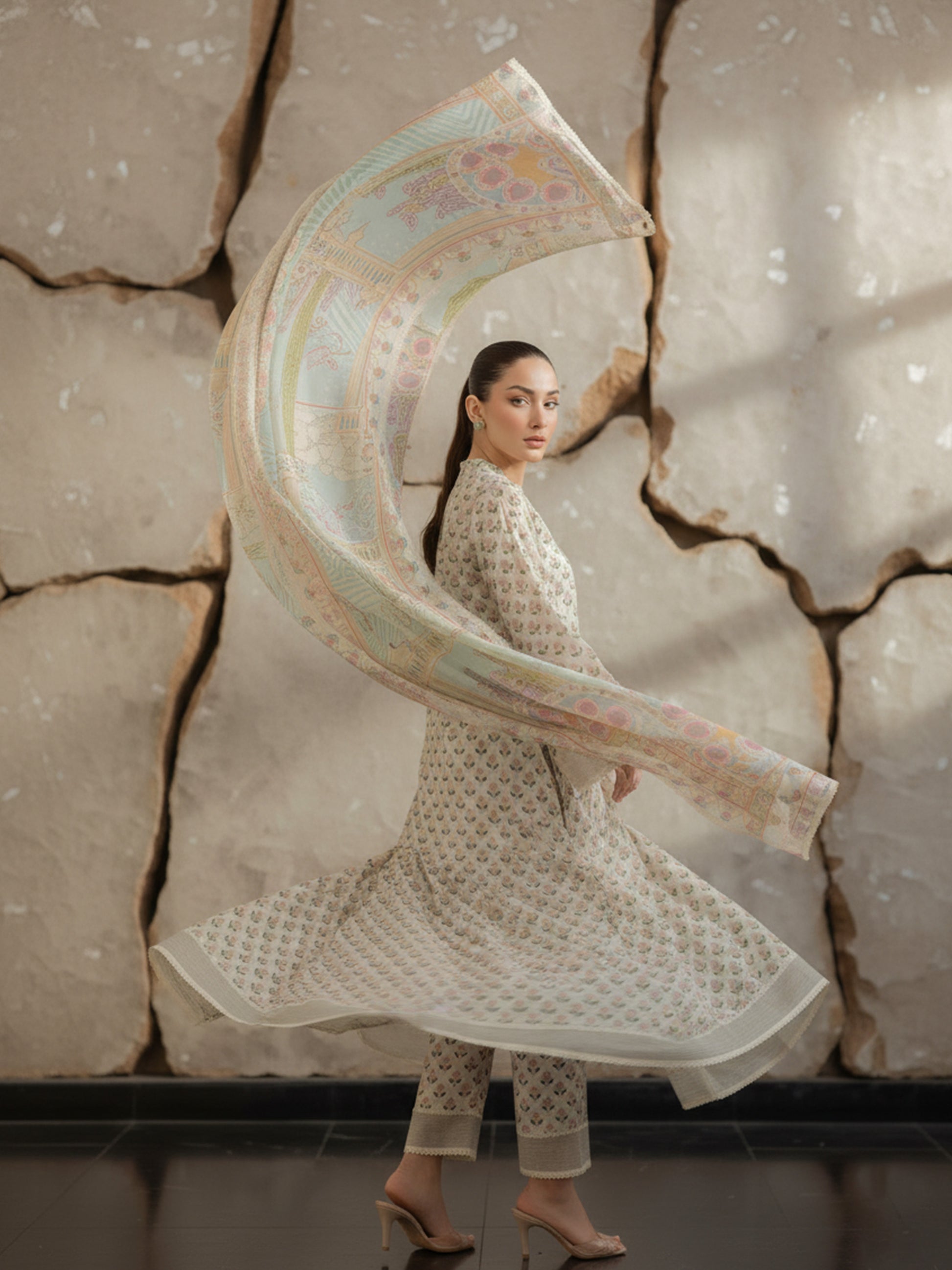 Digital Printed Dupatta: 2.25 Meters of matching viscose.