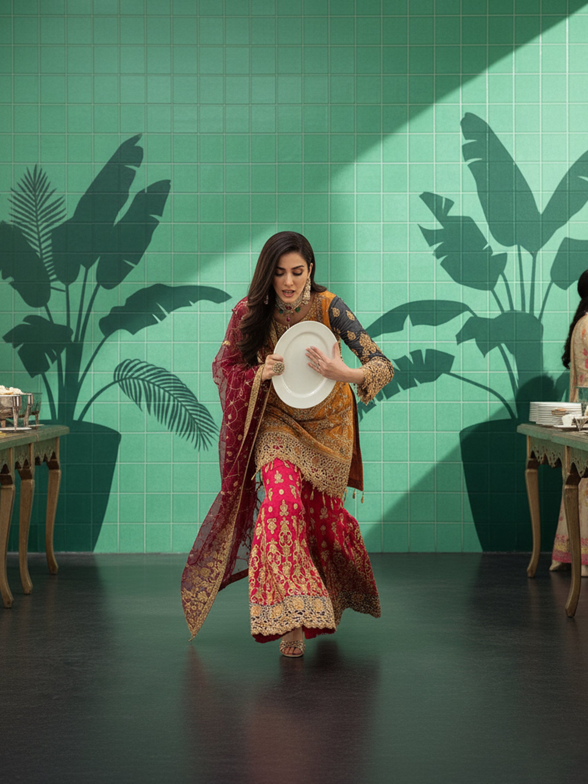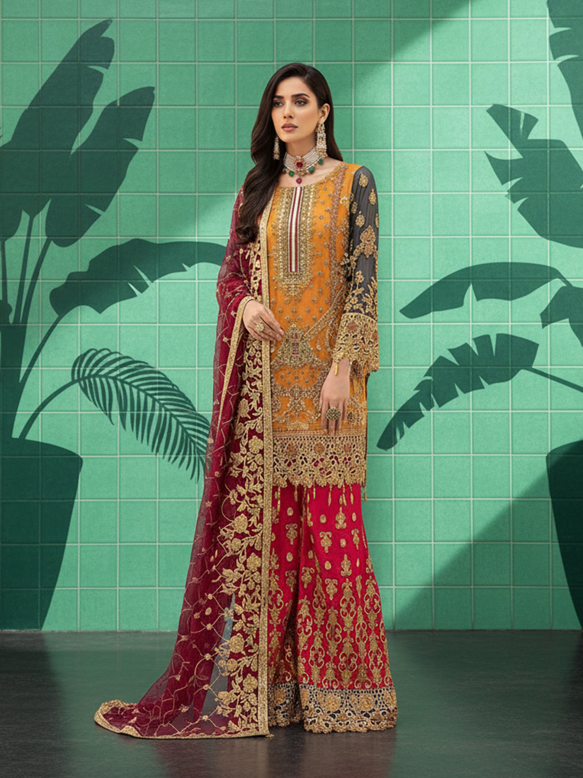 Restock Alert! The "MOST HIT DESIGN" Code MD 29 from the luxurious EMAN ADEEL Bridal Collection is back. This exquisite Master Replica Chiffon Suit promises a stunning formal look.